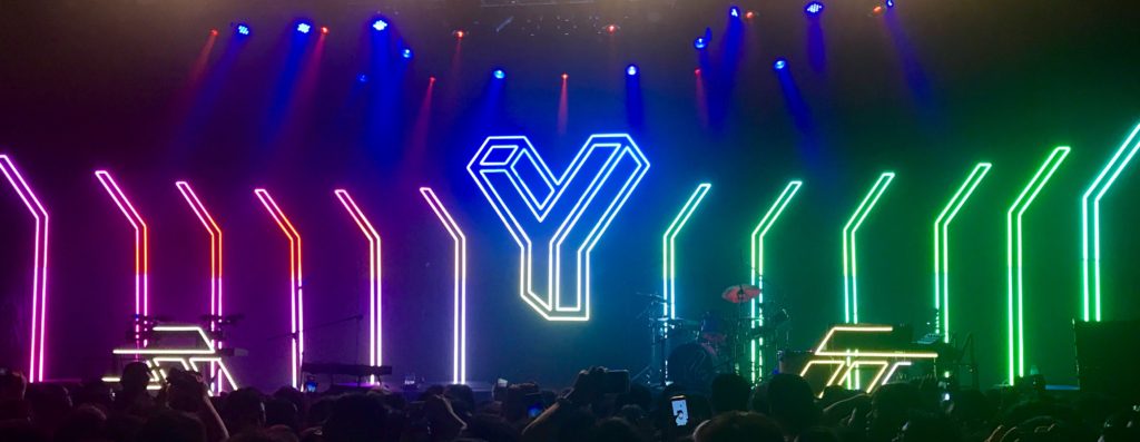 以前我从一首歌开始(哪一首已经不记得了)去听他们的专辑觉得整张专辑都很好听,可是却连MV都没有看过,连这个组合具体长什么样子的印象都很模糊,所以这次现场算是第一次。他们的歌本来就是流行加电子很high的类型,所以在这样的场子里感觉超棒的。我原来有一点担心像这样的舞曲在现场唱会不会反而不好听,但是不得不说现场的氛围真的加分太多了,观众多歌曲的熟悉程度和伴唱的程度都太强了。回来以后回看现场的几首歌的录像,不知道是不是录音效果的问题,感觉Olly唱得有点干、有的地方唱得有点单薄,但是这些问题在现场根本没有丝毫察觉到。一共只唱了一个小时多一点点,只唱了一首慢歌《Eyes Shut》,其他都是全程high歌;我本来挺期待的最近蛮喜欢的那首《Meteorite》没有唱。