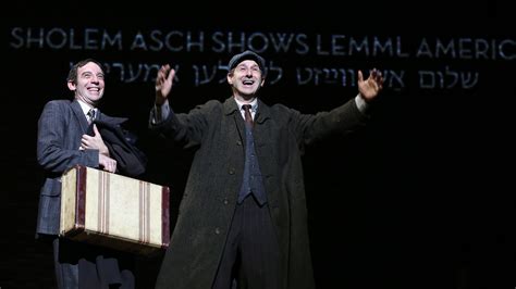 我试着总结故事情节。年轻的作家Sholem Asch用意地绪语创作了这部《God of Vengeance》话剧,里面讲述了一段发生在妓院的故事,妓院老板的女儿和妓院头牌的爱情,以及妓院老板想尽办法赚钱为的是买回犹太教经文书等等。偶然间接触到这部话剧的小伙子Lemml一下子就被它打动了,一路陪伴这部话剧的上演,从欧洲到美国。但是在百老汇上演的时候,同性相爱的情节被删掉了,但是还是被禁了, 所有演职人员都被带走、以有伤风化的罪名被告上法庭。而此时的作家却沉浸在犹太大屠杀的惊吓中,没法上庭自卫这部话剧。Lemml回到犹太依然在被镇压的欧洲,在艰苦的环境下继续排演这部话剧。